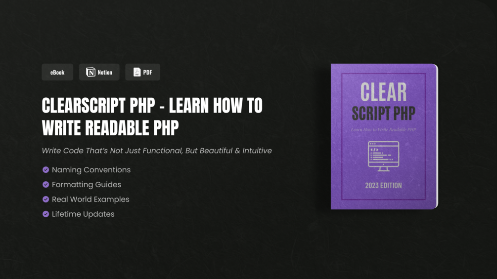 Enough of the Chaos! Dive into the ClearScript PHP eBook. Unlock the secrets to writing highly readable PHP code that you, your team, and your future self will love.